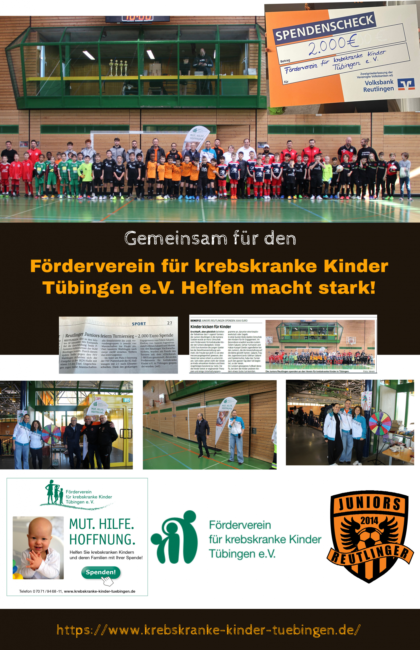Was für ein unvergesslicher Tag! Am 01.02.2025 haben die Reutlinger Juniors bei ihrem eigenen Hallenturnier nicht nur um Tore gekämpft, sondern auch gemeinsam Gutes getan. Mit unserer Spendenaktion für den Förderverein für krebskranke Kinder Tübingen e.V. konnten wir Kindern Hoffnung schenken – und das dank eurer unglaublichen Unterstützung!